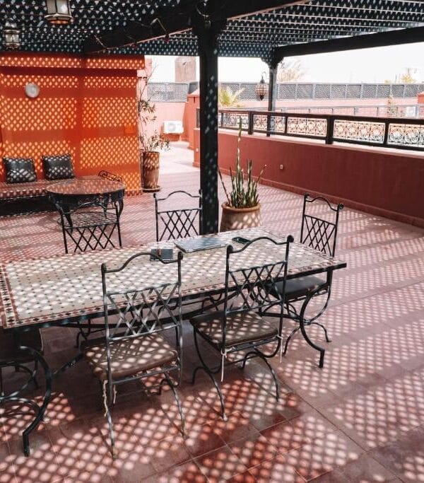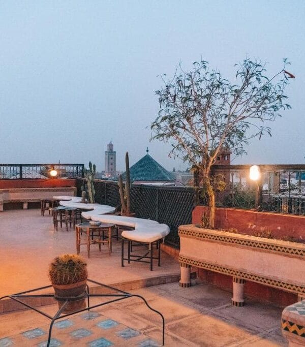 With a refreshing outdoor pool, rooftop terrace, cozy lounges, and on-site dining, it offers one of the best stays in Marrakech for solo travelers, couples, and small groups.