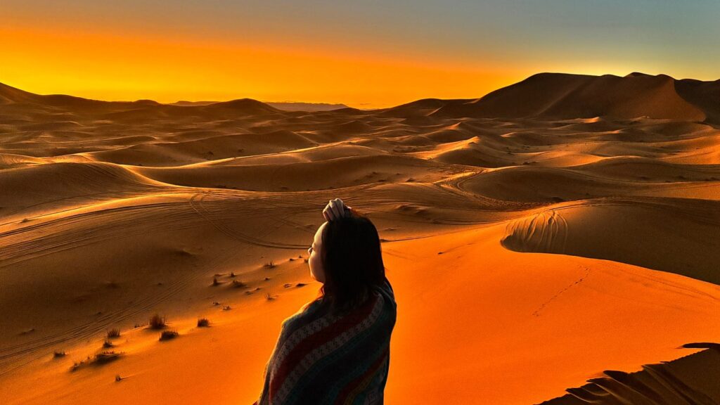 - Ride a camel over windswept sand dunes at sunset and spend an evening camped under the Sahara’s starry night sky.